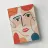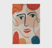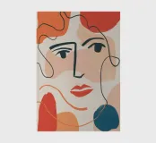 A modern and minimalist abstract portrait created with fluid, continuous lines, depicting a face with a gentle expression in an earthy color palette.
