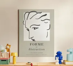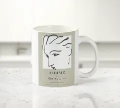 The "Forme et Abstraction" design impresses with its simple lines and minimalist depiction of a facial profile. In soft beige and grey tones, it radiates calm and elegance. The clear lines create a modern yet timeless picture that blends in perfectly with various interior styles. Perfect as a wall mural, mug, cushion or mobile phone cover to add a stylish and artistic touch to any room. A must-have for lovers of minimalist art and purist aesthetics
