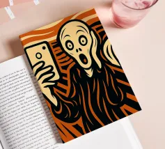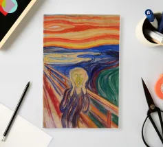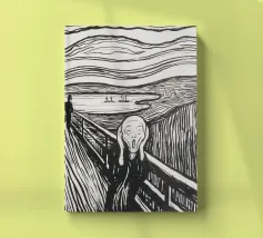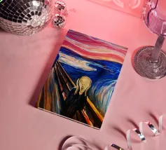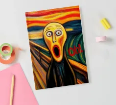 When the paper tears and reveals the eternal scream, you realize that not even industrial packaging can contain existential crisis. The FRAGILE label feels more like a diagnosis than a guideline. Edvard Munch would be delighted, or possibly terrified all over again.