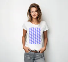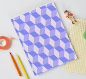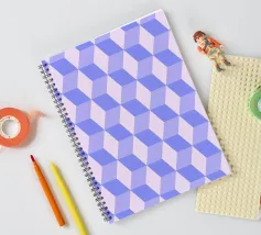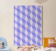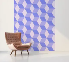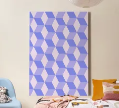 Captivating geometric pattern print featuring a tessellation of rhombuses creating a striking 3D cube or spatial illusion, rendered in shades of light purple/lavender. Repetition of geometric forms builds this compelling optical effect. High-quality digital art file (7000x5000px, 300 dpi) perfect for stunning prints. Ideal modern abstract wall art.