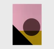 Embrace the aesthetic of modern design with this striking geometric abstract art print. Featuring a captivating composition with color blocks in pink, yellow/orange, and black, separated by bold diagonal lines. A large dark red/brown oval shape is layered over these sections. This artwork uses simple geometric forms and strong color contrasts to create a visually engaging abstract piece, exploring the interaction of shapes and hues. This high-quality digital art file boasts a stunning 7000x5000 pixel resolution at 300 dpi, ensuring exceptional detail and clarity for your poster print. A perfec