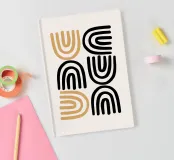 Explore minimalist geometric abstraction with this striking Bauhaus-inspired graphic art print. Featuring a captivating composition of geometric U-shaped or arch-like forms in bold colors (brown/orange and black), arranged in a rhythmic vertical pattern. This artwork embodies principles of abstract form, color, and composition, with a contemporary feel influenced by the Bauhaus movement, highlighting the power of simple repeated geometric elements and color contrast. This high-quality digital art file boasts a stunning 7000x5000 pixel resolution at 300 dpi, ensuring exceptional detail and clar