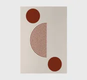 This minimalist design combines clear geometric shapes in a warm rust red on a cream-coloured background. The harmonious arrangement of semicircles, concentric lines and circles conveys timeless elegance and modernity. Perfect as a wall mural, mug, cushion or mobile phone cover - this motif is a stylish addition to any modern living environment. An ideal gift for design lovers and fans of geometric art.