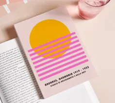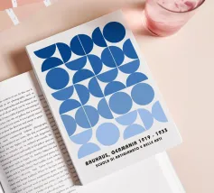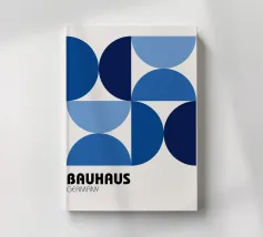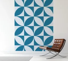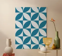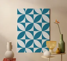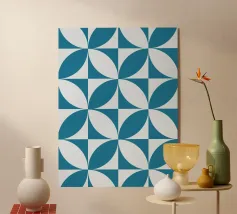 This design features a harmonious geometric pattern of overlapping semicircles in blue on a light-coloured background. The clear symmetry and timeless aesthetics make it a versatile statement for modern interior design. Perfect for posters, murals, cushions, mugs or shower curtains - ideal for anyone who loves minimalism, geometric art and Bauhaus-inspired patterns.