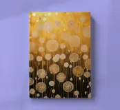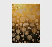 Decorative abstract art with a touch of symbolism and opulent flair: the motif of the dandelion is reinterpreted here, with the delicate white flower heads floating in a sea of shimmering gold and warm yellow tones. The background, a mixture of abstract textures and luminous bokeh effects, lends the image a dreamy, almost magical depth reminiscent of Klimt. The play of light and shadow, combined with the elegant choice of colours, creates a luxurious yet calming atmosphere of elegance, hope and a touch of nature.