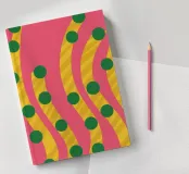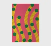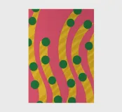 A simple and playful pattern of green, pea-like dots is scattered across a vibrant pink background, creating a fun, cheerful, and modern design.