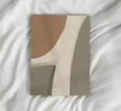 Soft, flowing shapes in earthy tones overlap to create an abstract design. The composition uses a palette of beige, brown, and gray, giving a calming and harmonious effect.
