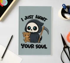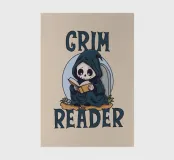 A little reaper sits before a tombstone, wrapped in his dark cloak, fully immersed in reading. The “Grim Reader” pun plays with the words reaper and reader, creating the perfect fusion between the dark and the literary. Perfect for lovers of books, clever humor and a touch of gothic aesthetic!