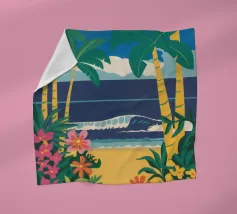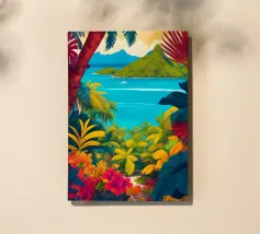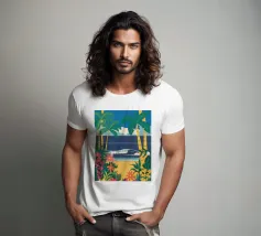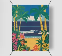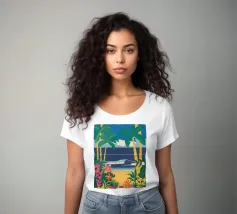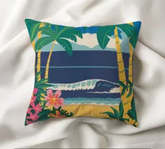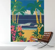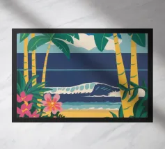 A serene illustration of a person relaxing in a hammock, with a beautiful view of the sea and mountains. The scene is a perfect depiction of tranquil, idyllic, and blissful seaside leisure.