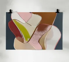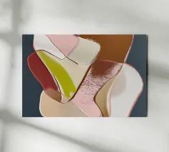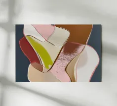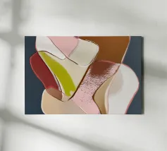 This work of art shows a harmonious interplay of organic colour surfaces in warm earth tones, delicate pastel colours and deep dark blue. The soft transitions and clear lines create a modern, abstract motif that radiates calm and elegance. Ideal as a contemporary wall decoration, it brings style and lightness to any room.