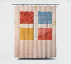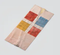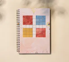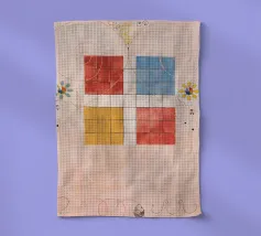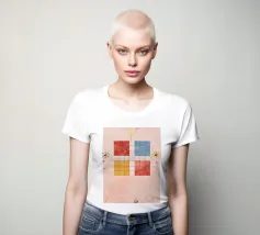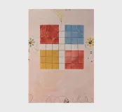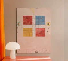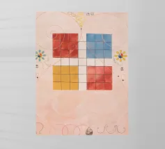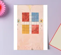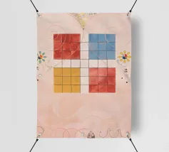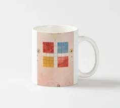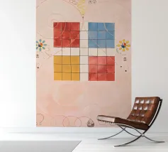 This captivating art print features Hilma af Klint's abstract work, characterized by a central grid of colorful squares in red, blue, and yellow, set against a soft pink background. Delicate swirling lines, floral motifs, and symbolic elements, including an infinity loop at the bottom, enhance the mystical and spiritual narrative. This piece showcases Klint's pioneering abstract vision and her exploration of evolutionary and cosmic themes. This high-quality digital poster (7000x5000 pixels, 300 dpi) beautifully captures the ethereal beauty and groundbreaking artistry of Klint's work, making it