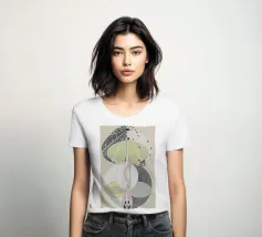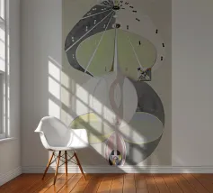 Immerse yourself in the profound abstract world of Hilma af Klint's "Tree of Knowledge No. 5." This stunning print captures the intricate spiritual and symbolic forms characteristic of af Klint's groundbreaking abstract art. The piece features a captivating arrangement of geometric shapes and organic lines in a harmonious palette of greens, grays, pinks, and yellows, with a striking, smaller, multicolored square element. Each detail of this pioneering work is rendered with exceptional clarity, thanks to the 7000x5000 pixels resolution at 300 dpi, ensuring a premium digital art experience. This