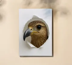 This stunning art print features a hyper-realistic, front-facing falcon portrait set against a clean white background for a bold and modern look. Every feather and detail is captured with lifelike precision, highlighting the bird’s sharp eyes and strong beak. The minimalist composition adds a refined elegance that enhances any contemporary space. Perfect for wildlife lovers, bird enthusiasts, and stylish home décor, this captivating piece brings power, grace, and nature-inspired beauty to your walls.