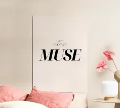 Embrace self-inspiration with this elegant digital poster featuring the powerful declaration "I am my own MUSE." The phrase is presented with "MUSE" in a striking, classic serif font, contrasting with the refined simplicity of "I am my own," all set against a clean, light background. This minimalist yet profound design is perfect for inspiring creativity, self-love, and confidence in any workspace, bedroom, or living area. With a superior resolution of 7000x5000 pixels at 300 dpi, this high-quality digital print ensures crisp lines and a timeless aesthetic, embodying excellence in digital art.