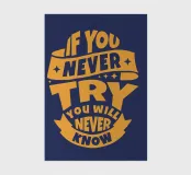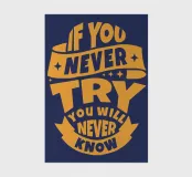 Radiate positivity with our vibrant "If You Never Try You Will Never Know" typography art print. This uplifting message, beautifully rendered in playful orange hand-drawn lettering against a striking blue navy background, creates an eye-catching contrast that's sure to brighten any space. The whimsical design perfectly captures the carefree spirit of the phrase, inviting positivity into your home, office, or personal style. Available on various products, this versatile artwork is ideal for spreading cheer wherever you go. Let this charming print serve as a