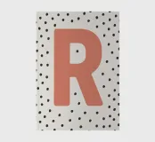The playful design with the letter "R" in bright red on a black dot pattern is a stylish eye-catcher. Perfect for children's rooms, modern living spaces or as a gift idea with a personal touch. The clear typography combined with a Scandinavian-inspired pattern adds a charming accent to any room. Ideal for combining with other letters from the series.