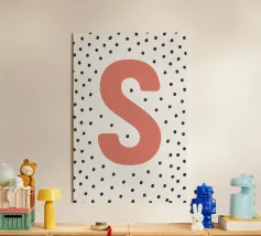The playful design with the letter "S" in bright red on a black dot pattern is a stylish eye-catcher. Perfect for children's rooms, modern living spaces or as a gift idea with a personal touch. The clear typography combined with a Scandinavian-inspired pattern adds a charming accent to any room. Ideal for combining with other letters from the series.