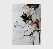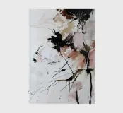An energetic abstract composition driven by instinctive gestures and spontaneous movement. Bold black strokes cut through soft layers of white, beige, and muted blush tones, while splashes and drips introduce a raw, emotional rhythm. The contrast between fluid motion and grounded textures creates a sense of tension and freedom, making the artwork ideal for large-format fine art prints, contemporary interiors, and modern gallery or editorial use.