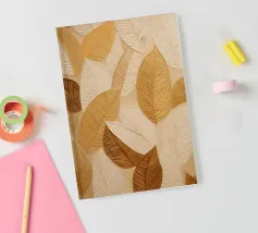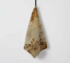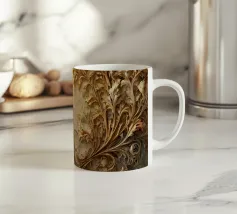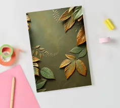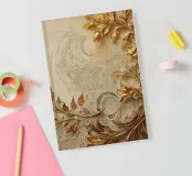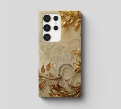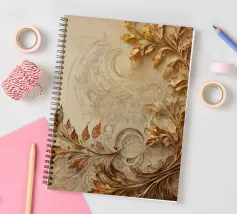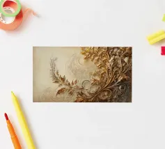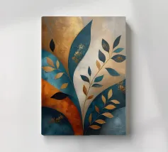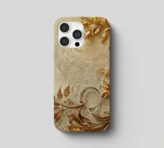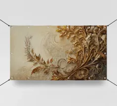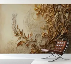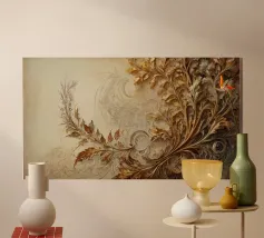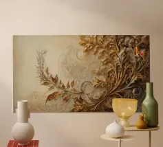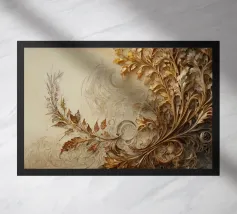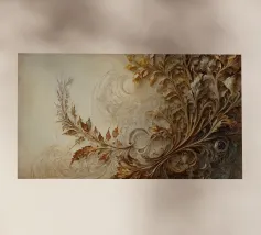 This artwork features a stunning display of autumn leaves elegantly intertwining with intricate swirling patterns, showcasing natural beauty and artistry.
