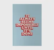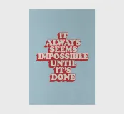 Brighten any space with this striking art print featuring the phrase “It Always Seems Impossible Until It's Done” in bold retro 3D red and white lettering on a vibrant sky blue background. The dynamic design inspires perseverance and positivity, making it a perfect gift for students, home offices, or anyone in need of encouragement. Its eye-catching colours and vintage flair suit modern and classic interiors alike. Ideal for birthdays, graduations, or to uplift your own walls with a daily boost of confidence and style.