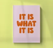 A simple yet bold typographic artwork featuring the phrase “It Is What It Is.” With clean lines and balanced layout, this design captures a calm acceptance of life’s flow.