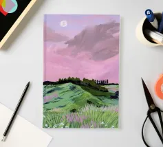 Sarah Gesek gives her landscapes an otherworldly wonderland feel with rich colours and brings distant worlds to your home. The Seattle-based artist prefers to work with acrylic paint on paper, but also with gouache, coloured pencils, wax crayons and more. Inspired by the natural spectacle of rugged cliffs and rolling gardens, starry nights and atmospheric skies, Sarah's works imbue a sense of wanderlust. Dive in, walk through and fall in love with our world all over again.