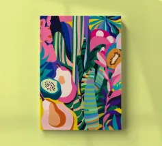 A vibrant and chaotic collage of clashing patterns, including stripes, polka dots, and organic shapes. The joyful explosion of color and texture creates a piece of art that is energetic and full of life.
