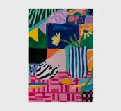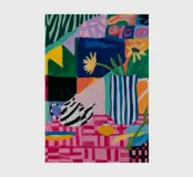 A vibrant and chaotic collage of clashing patterns, including stripes, polka dots, and organic shapes. The joyful explosion of color and texture creates a piece of art that is energetic and full of life.
