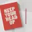 Elevate your space with this uplifting typography art print. The encouraging phrase "Keep Your Head Up" is beautifully rendered in soft beige bold hand-drawn lettering, set against a soothing light red background. This elegant piece serves as a gentle daily reminder to stay positive and persevere through life's challenges. Perfect for adding a touch of motivation to any room, from a cosy bedroom to a bustling office, this artwork is sure to inspire and uplift. Let this stylish print encourage you to face each day with confidence and optimism.