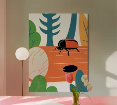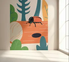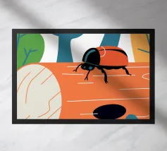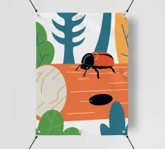 Enjoy a charming vector illustration featuring a ladybug on a log.