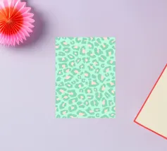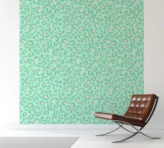Gorgeous pastel mint green leopard pattern, with sage green and blush peach leopard spots, on a mint green background.