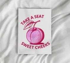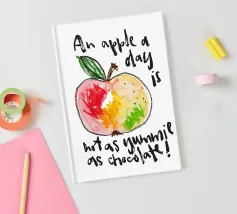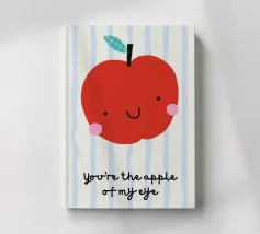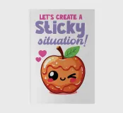 A cute, cartoon apple coated with caramel winks playfully, accompanied by two pink hearts. The text reads, "Let's create a sticky situation!".
