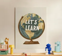 🌍 "Let's Learn" - Discover the world with this inspiring learning poster! 🌍 This stylish "Let's Learn" poster is the perfect decoration for children's rooms, classrooms or learning areas. With a beautifully illustrated globe and motivating lettering, it inspires curiosity, a thirst for knowledge and a thirst for adventure in children. The soft vintage look in warm, earthy colours creates a harmonious atmosphere and is ideal for boho or Montessori-inspired rooms.