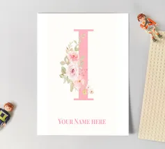 Letter I, Personalized Name Print, Personalized initial, Flowers