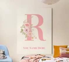 Letter R, Personalized Name Print, Personalized initial, Flowers