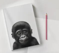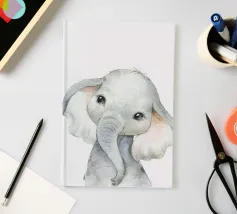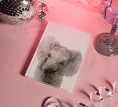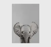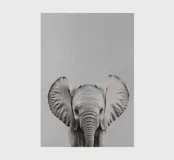 A cute portrait of a baby elephant with big eyes in a minimalist black and white illustration that captures the charm of nature.