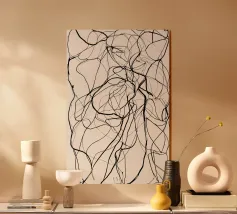 This extraordinary art print design combines fine, flowing lines with a dynamic composition. The monochrome colour scheme underlines the minimalist aesthetic and makes the artwork a timeless eye-catcher for modern living spaces. The elegant lines are reminiscent of an abstract depiction of figures and at the same time exude movement and harmony. Perfect for minimalist, Scandinavian or modern interiors - whether in the living room, bedroom, office or studio.