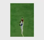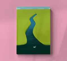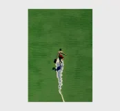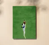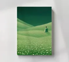 A single figure walks barefoot across a huge green surface - but its track is made of glistening water. The narrow path of water runs through the picture like a crack in everyday life, allowing reality and surrealism to flow into one another. With a determined stride, the figure embodies freedom, unusualness and the art of finding one's own way.