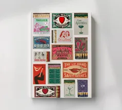 An artful mix of vintage matchbooks from iconic cafés, restaurants and coastal towns. This design exudes retro charm and is reminiscent of road trips, coffee shops and seaside fish restaurants. Ideal for anyone who loves typography, design history and the magic of small things - perfect for kitchens, gallery walls or creative workspaces.