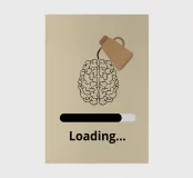 A brain is depicted being filled with coffee from a pot, accompanied by a loading bar below. The illustration humorously suggests the mind's need for coffee to function properly.