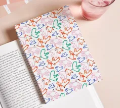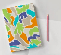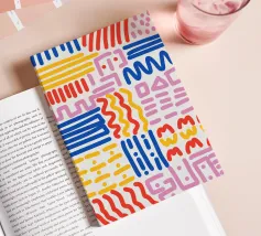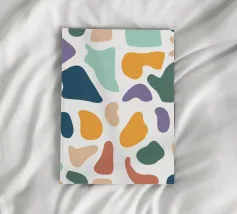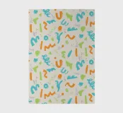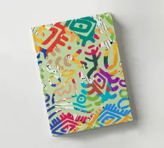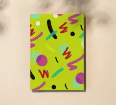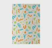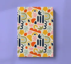 This design presents an abstract composition of flowing lines and shapes in bold colours. The elements are arranged harmoniously and give the pattern a dynamic and playful look.