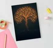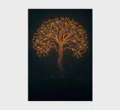 This AI-generated art piece depicts a mystical Tree of Life, not with leaves, but with a vibrant network of glowing, golden orbs and intricate, branching lines. The tree's form is reminiscent of both a living organism and a complex electrical circuit, symbolizing the interconnectedness of nature, technology, and the cosmos. The dark background is peppered with faint stars, enhancing the ethereal and cosmic feel. This artwork is perfect for adding a touch of wonder, wisdom, and spiritual energy to any modern or minimalist space. It's a striking visual representation of growth, enlightenment, an