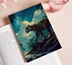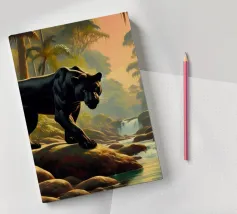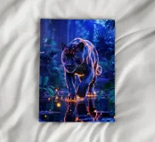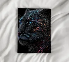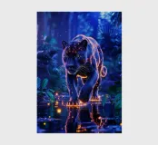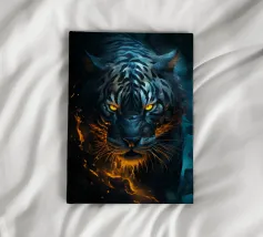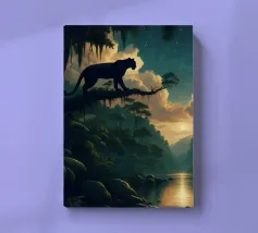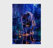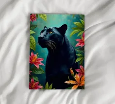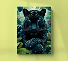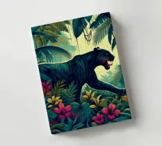 A black panther, surrounded by supernatural sparks, strides through a jungle bathed in mystical light. This design fuses animal power and visual magic to create a hypnotic, fairytale-like scene. Ideal for an intense, mysterious and fantastical decor, this visual will delight fans of felines, wild nature and imaginary worlds. It's captivating, vibrant and deeply enchanting.