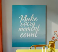 This inspiring quote reminds us to seize the day and make the most of every moment. The simple yet powerful message is perfect for any space, from your bedroom to your office. The soft blue background and elegant typography create a calming and uplifting atmosphere.