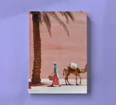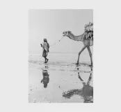 Man with his camel. Afar man walking through the Danakil depression in Ethiopia. Walking to a salt lake in the heat of the desert.