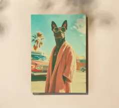 Absurd compositions featuring human dogs. Human dogs who, like us, live in Paris, Los Angeles or London and who, like us, are passionate about fashion, cars or nothing at all. Dogs that are disillusioned, amused or loved. Some are hippies, others have tattoos. In short, dogs who are just like us. Or are we like them? Dive into the artistic world of Dogland, an exclusive collection dedicated to all those who consider their dog to be a member of the family. Here, each dog poster is a work of art thought up with humour, tenderness or elegance. Whether you're a fan of bulldogs, dachshunds or corgis, you'll find the wall poster that will make your home bark with happiness. Add a canine touch to your walls with original illustrations, printed on quality paper, ready to sublimate your interior. Dogland is more than a shop: it's a declaration of love for dogs.