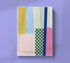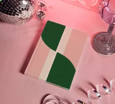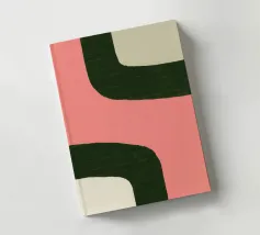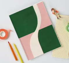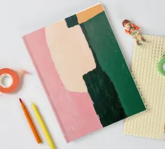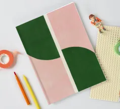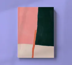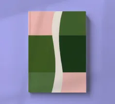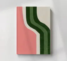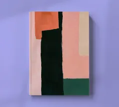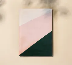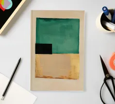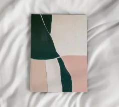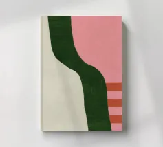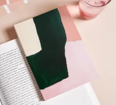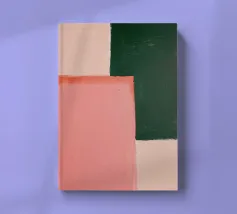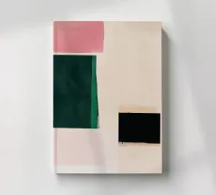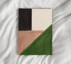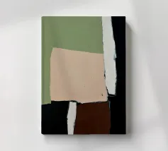 Minimalist, pink, green and white colour blocks on a sage-coloured background, created with acrylic paint.
