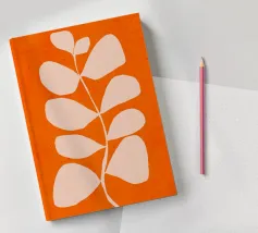 Minimal abstract leaf form in warm orange tones, bright and modern in style.