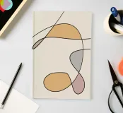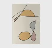A collection of abstract shapes in earthy tones overlaid with thin, dark lines creates a modern and minimalist design. The composition feels calm and balanced, with the use of negative space contributing to the overall simplicity.