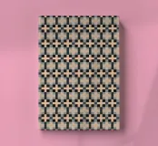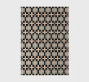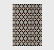 A complex geometric pattern features interconnected plus shapes in muted tones of beige and dark gray, forming a grid-like structure. The repetitive design creates an optical illusion effect, drawing the eye into the intricate weave of lines.